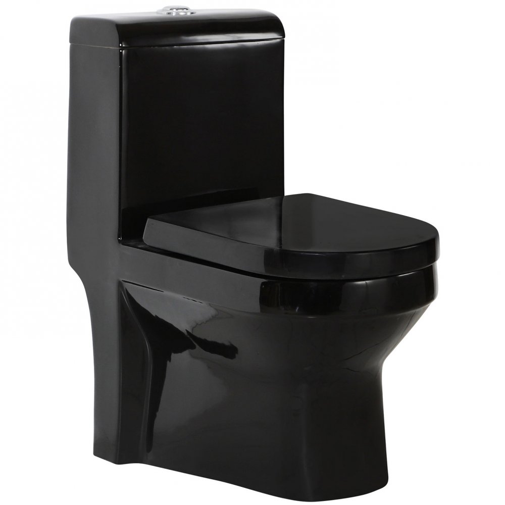 Gulvstående toalett i svart design som passer til det moderne badet. Toalettet er laget av svart keramikk , veier 47 kg og har mål på 52 x 36 x 31 cm. For å spare vann har toalettet to knapper for et dobbelt spylingssystem som lar deg velge mellom full eller halv spyling. Det rette og rene designet gjør også toalettet svært enkelt å rengjøre.