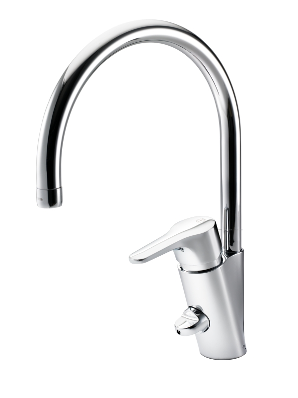 Gustavsberg Nautic kjøkkenkran, høy tut, med avstengning