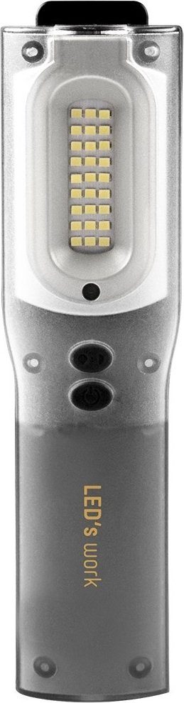 Oppladbart og dimbart arbeidslys med en lysstyrke på 1000 lm. Den har 2 lyskilder, et primærlys på 1000 lm foran som kan justeres til 100 % og til 50 % sammen med et ekstra lys på 200 lm på toppen som også kan stilles inn til 100 % og 50 %. Når den er fulladet fungere primærlyset i 3 timer og tilleggslyset i 12. De sammenleggbare magnetfoten har en sklisikker overflate, slik at du kan plassere lykten på en jevn overflate uten at den sklir og justere den på jevne overflater. På toppen har lampen en robust polykarbonatkrok å henge den opp i. Dette arbeidslyset leveres komplett med en 230V lader og en 12V billader.
