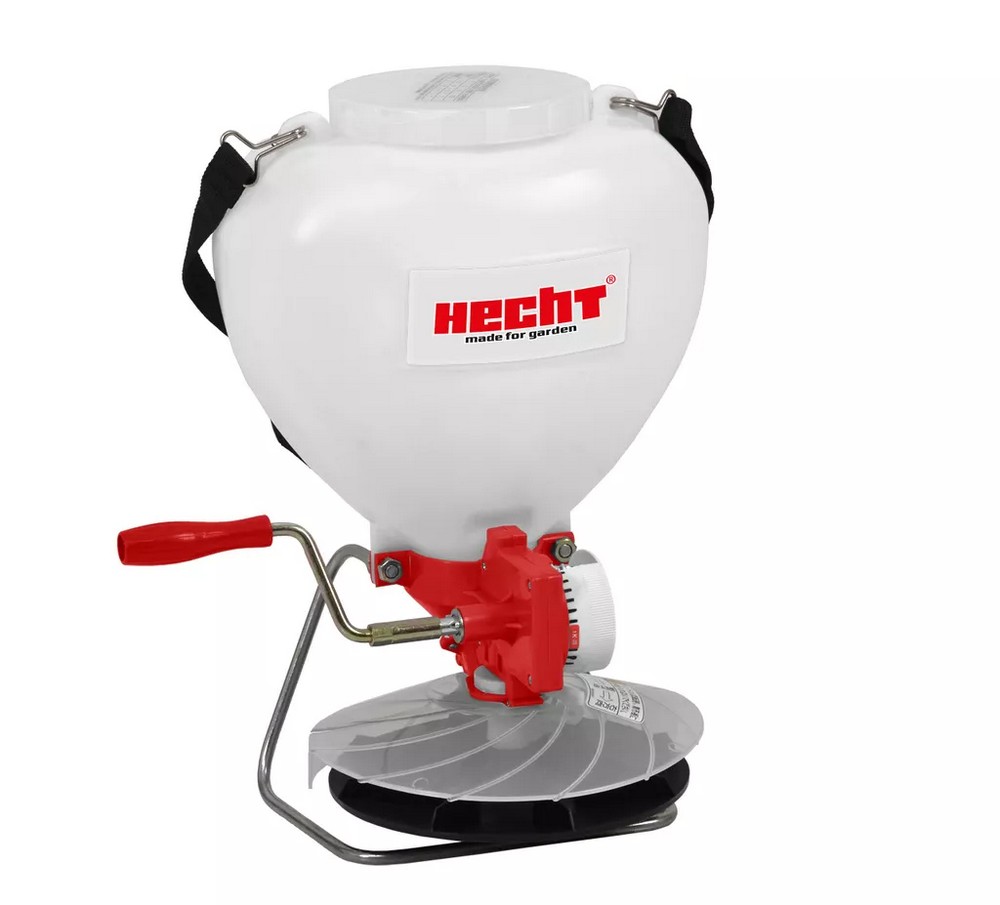 Spreder for gjødsel, frø og salt om vinteren. Sprederen rommer 8 liter.