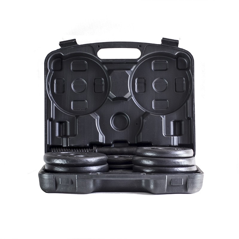 Manualsett i skivestangsmodell med vekter og bæreveske.