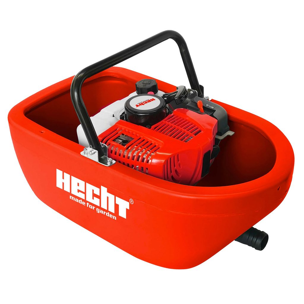 Flytende vannpumpe med 2-taktsmotor. Egnet for drenering av hagedammer eller opprensing av oversvømmelser.