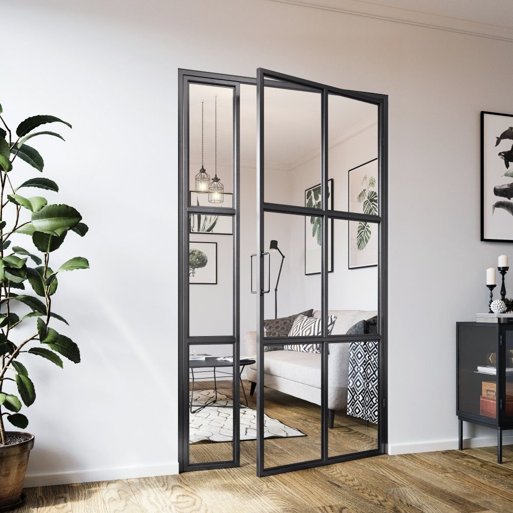 Denne stilrene glassdøren med sidefelt i industrielt design er et utmerket valg for deg som ønsker å kombinere estetikk og funksjonalitet. Den slipper inn lys og skaper en romslig følelse, samtidig som den skjermer visuelt og demper lydnivået – noe som bidrar til en harmonisk og moderne atmosfære i hjemmet. Med denne glassdøren kan du enkelt avgrense rom og skape mer privatliv uten store bygningsarbeider.