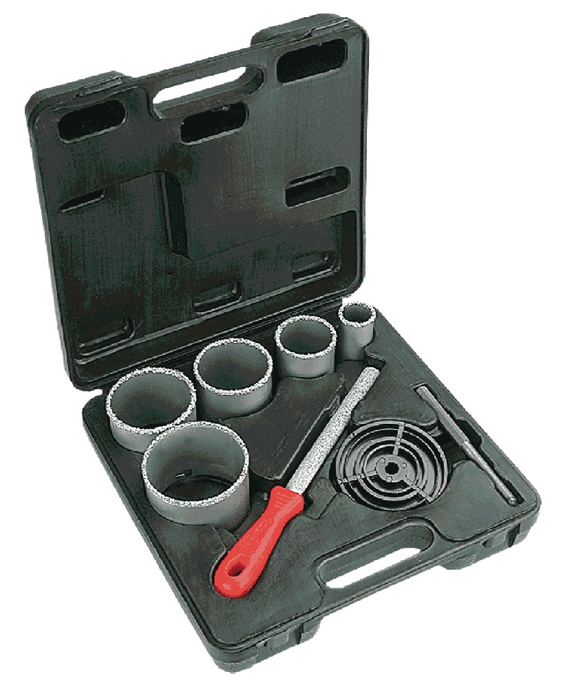 Fil med slipekorn av wolframkarbid er en ekstra del av settet og tillater manuell etterbehandling av overflater etter boring. 32-83 mm, 5 sett + fil, pose, 32, 52, 67, 73, 83 mm, skjæredybde 55 mm.