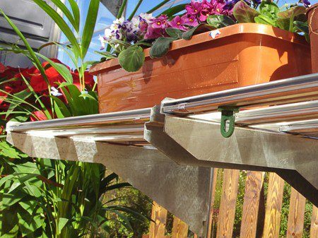 Sett opp en hylle i riktig høyde for å frigjøre plass på drivhusgulvet og henge plantene opp på veggen.