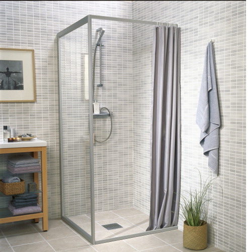 Dusjveggen kan kombineres med skyvedørparti. Høyde 1950 mm. Ifö Solid fast vegg gir muligheten til å bygge dusjen som man ønsker. Den innebygde gulvsokkelforseglingen tåler ujevnheter opp til 25 mm. Den faste veggen kan også kombineres med gulv- og takstøtter hvis du bare vil ha en vegg og ikke noe mer. Det kan også kombineres med gulv og gardinstang hvis du vil ha en mer økonomisk løsning, men som likevel er tett mot den ene siden, for eksempel mot bademøbler. Den faste veggen er laget i samme herdede sikkerhetsglass som de andre modellene i Ifö Solid. For å kombinere dusjvegg SV med skyvedør SVS, finnes det ulike tilbehørsprofiler.