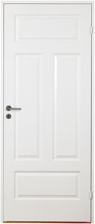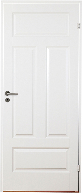 Hvitmalt kompakt innerdør med dekorpanel i klassisk speiloppsett.
