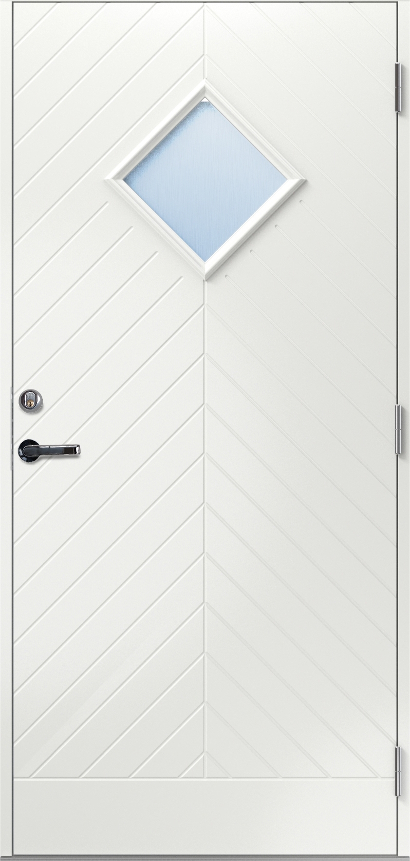 Amelia-inngangsdøren med glass har et diagonalt rillet mønster som er delt på midten av en linje som en fin dekorasjon på denne robuste døren. I øvre kant av døren har du et diamantformet vindu som gir et fint lys. Med denne døren trekkes noens tanker til sommerhytta eller tømmerhytta på fjellet. Døren egner seg også til garasjen eller lageret hvor mange liker privatliv, som for eksempel til det moderne huset eller det klassiske.
