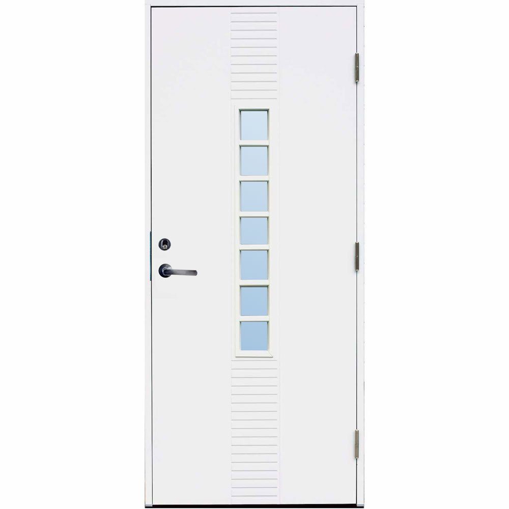 Mange ytterdører på markedet har glatt innside, men med denne døren får du både innsiden og utsiden med det fine freste mønsteret . I tillegg har den dobbel tetningslist for ekstra isolerende effekt, låseboks og justerbare hengsler medfølger.
