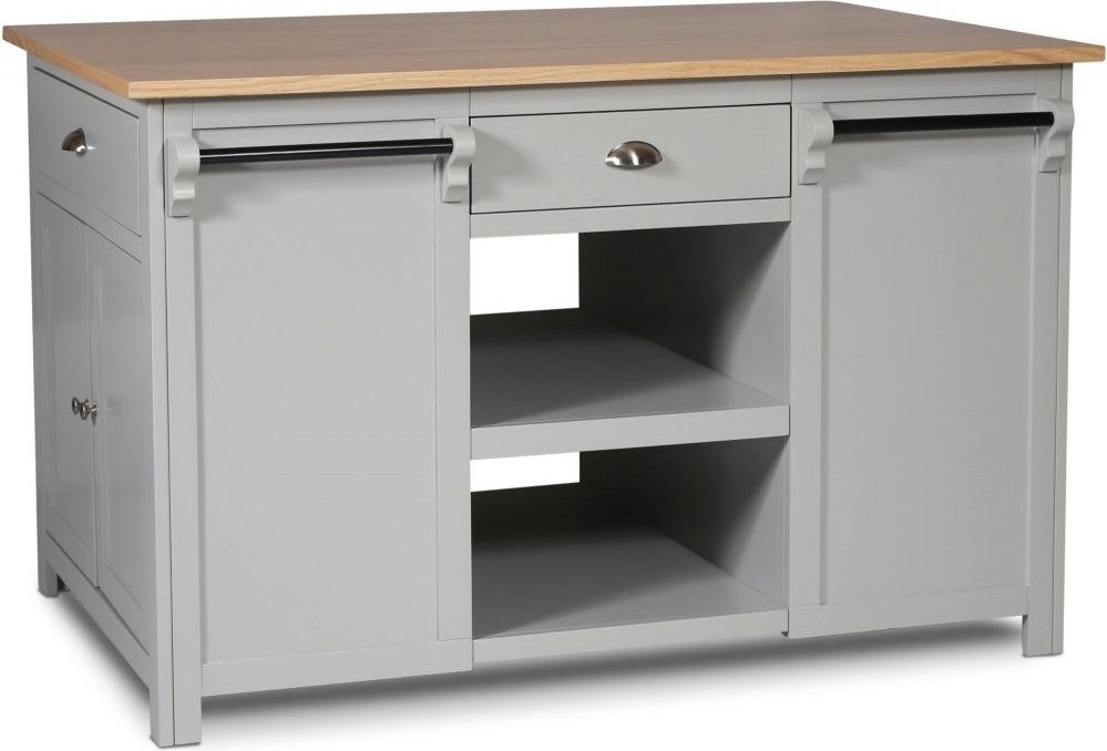 Heritage kjøkkenøy grålakkert blir hjertet i kjøkkenet. En praktisk kjøkkenøy med gode oppbevaringsmuligheter i både skap og skuffer og en ekstra arbeidsflate. Leveres i 3 fabrikkmonterte moduler som skrus sammen med topplate. Toppplaten er i finér som er lakkert for å gi en slitesterk arbeidsflate.