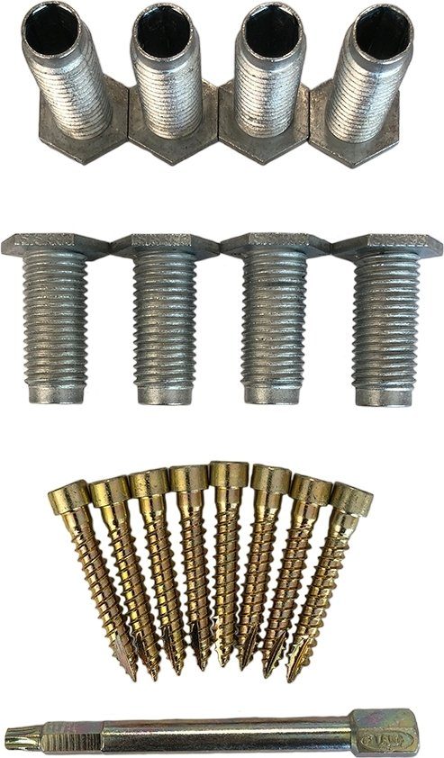 Komplett karmskruepakke for vinduer og dører. Hvilken størrelse hylser du trenger, avhenger av avstanden mellom vegg og karm. Sørg for at minst en tredjedel av karmhylsen sitter i karmen slik at vinduet eller døren du setter opp er stabil.