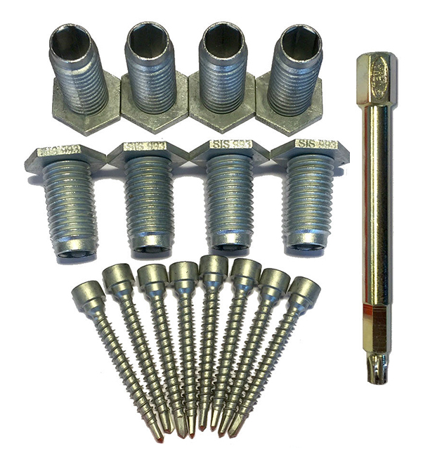 Komplett karmskruepakke for vinduer og dører. Hvilken størrelse hylser du trenger, avhenger av avstanden mellom vegg og karm. Sørg for at minst en tredjedel av karmhylsen sitter i karmen slik at vinduet eller døren du setter opp er stabil.