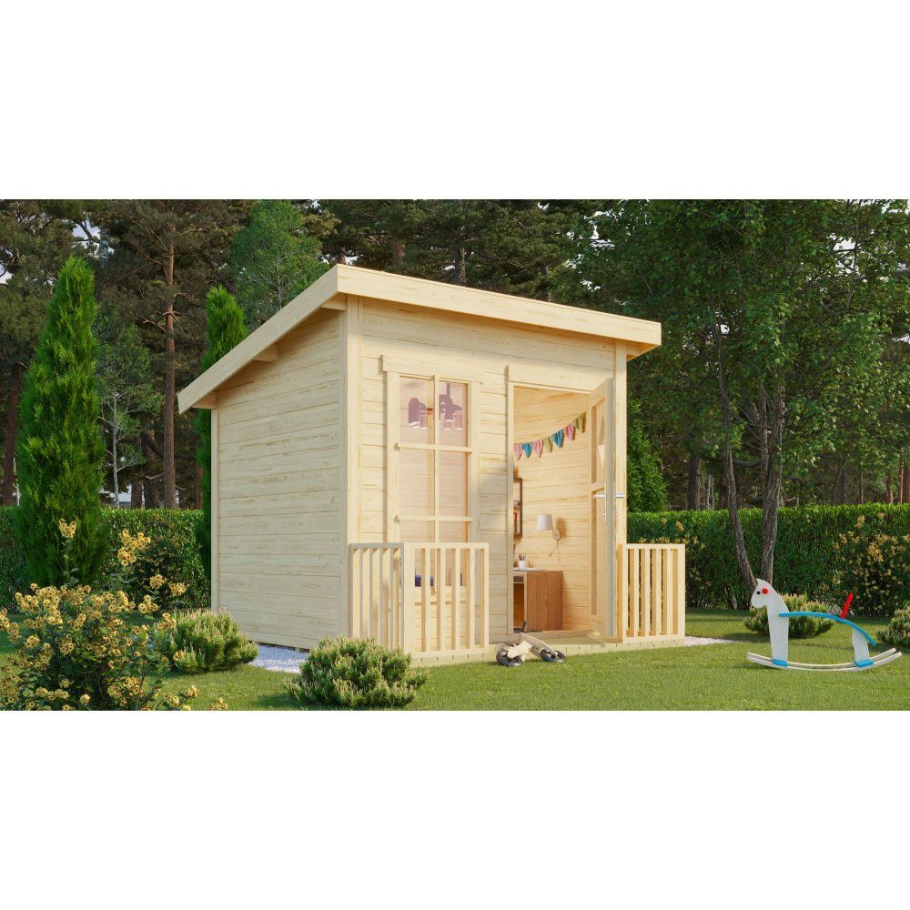 Lekehus Filipa er et sjarmerende og robust lekehus med et areal på 3,2 m², perfekt for alle barnas leker og fantasi. Laget av FSC-sertifisert tre, er det både slitesterkt og miljøvennlig. Hytta leveres også ubehandlet, noe som gir deg og dine barn mulighet til å male og tilpasse den til din spesielle stil eller behov i hagen.