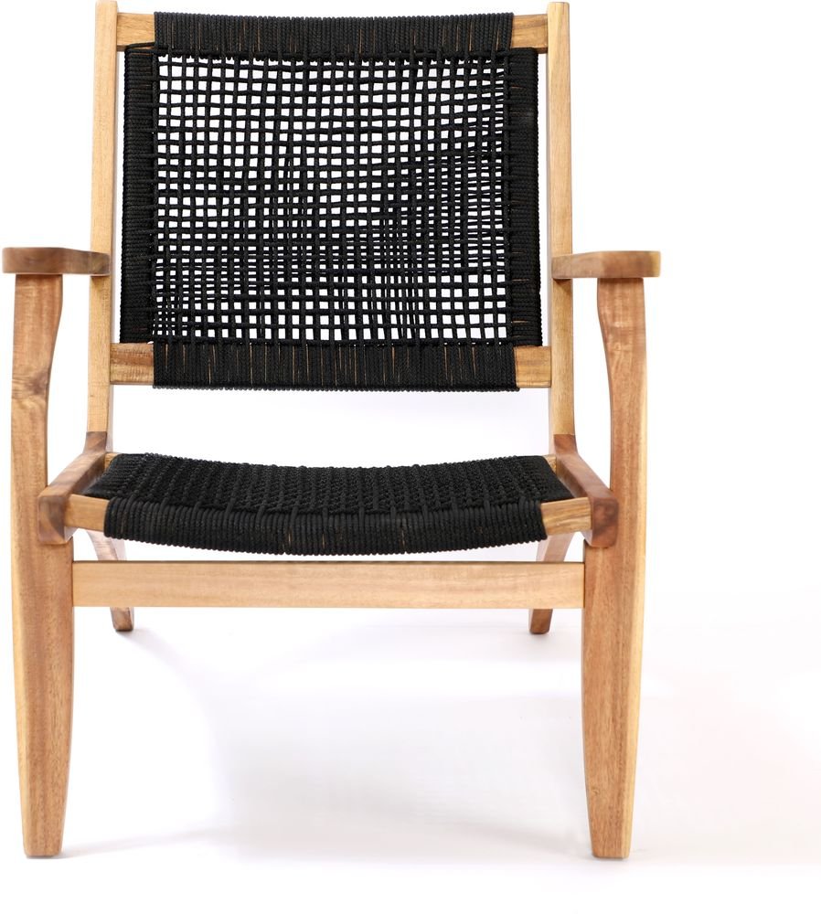 Stol laget av akasie og svart tau.