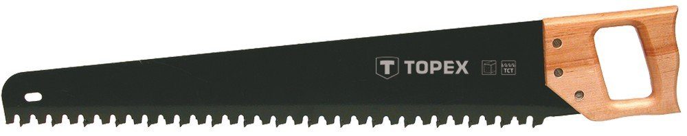 Sagbladet har 17 grove karbidtenner. Håndtaket er laget av en hard tresort.