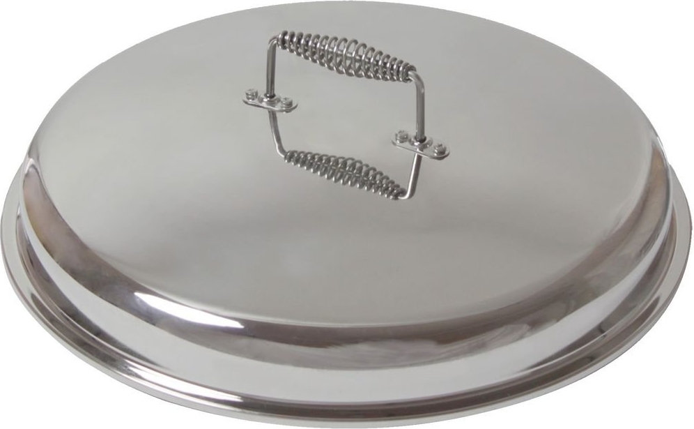Lokk til stekehelle størrelse 48 cm. Laget i rustfritt stål.