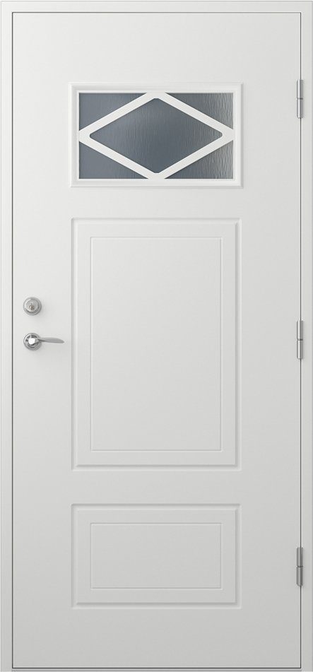 Ytterdør med vindu i serien Louise. Døren kan tilpasses dine behov i forhold til størrelse, farge, vindustype, åpningsretninger og mer.