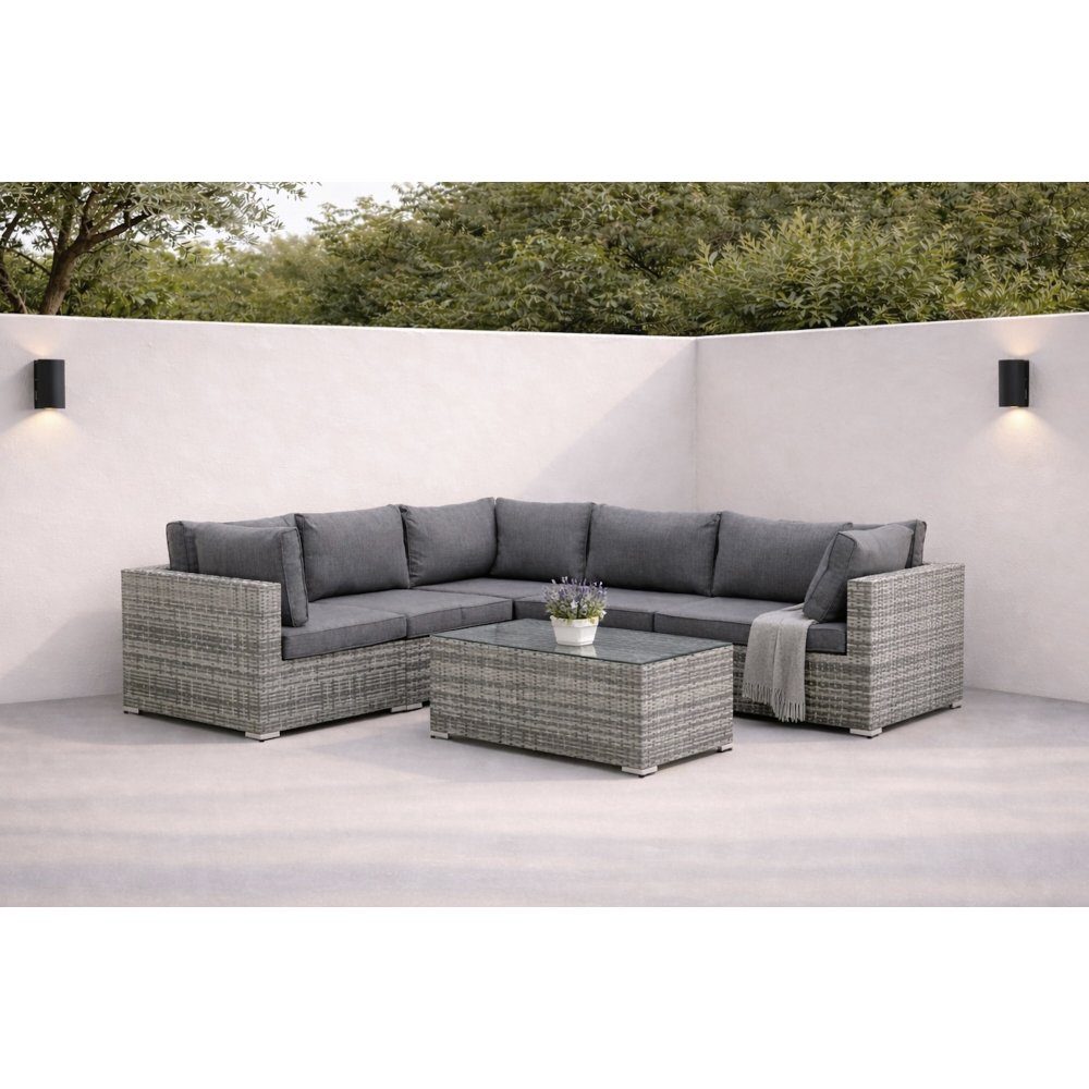 - Romslig loungegruppe i grå syntetisk rotting