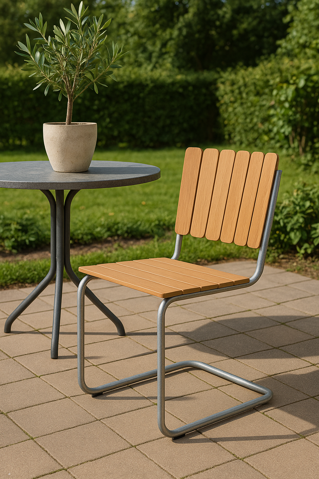 Möllan er en eksklusiv serie i klassisk skandinavisk design. Utegruppen er laget av galvanisert stål med heltre oljet teak. Dette gjør utegruppen værbestandig og slitesterk for å tåle uteplassmiljøet.