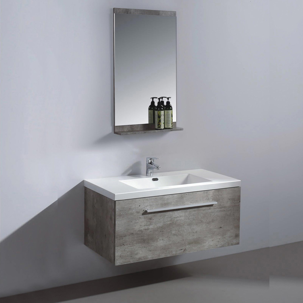 Moderne servantskap. Det stilrene designet gir et moderne og minimalistisk inntrykk som minner om våre stolte skandinaviske design. Skapet har også et enkelt og praktisk skuffedesign med en stor skuff som er meget romslig og lett å komme til for oppbevaring sammenlignet med en tradisjonelle skapdesign. Pakken kommer med matchende speilhylle.