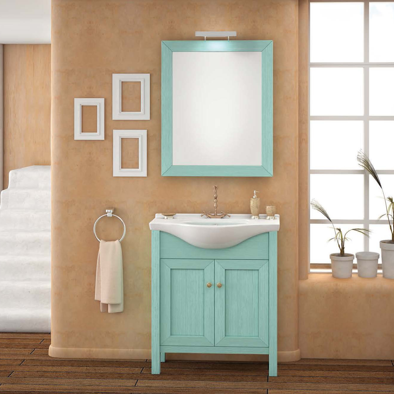 Faethon Møbelpakke fra Nordamist med et Gulvstående servantskap i bøk, servant av porselen, speil og belysningspakke fysi.