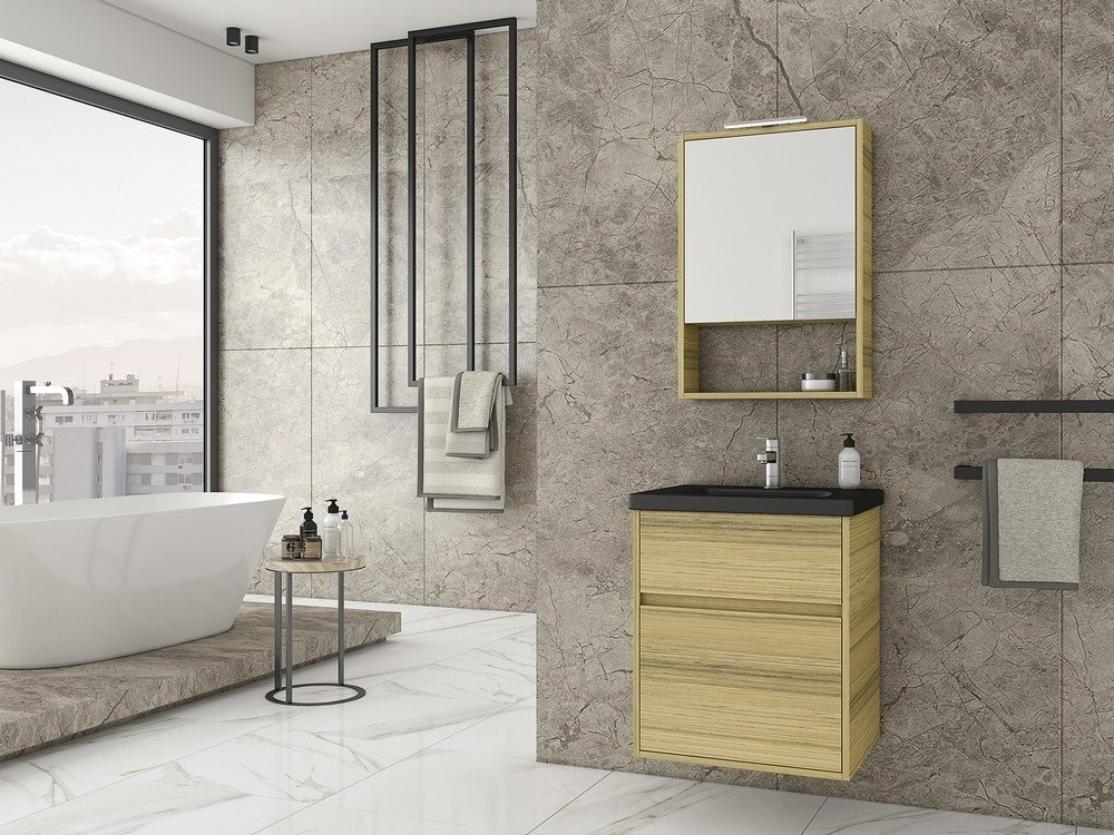 Møbelpakke Instinct 55 - Natural Oak/Svart med speilskap