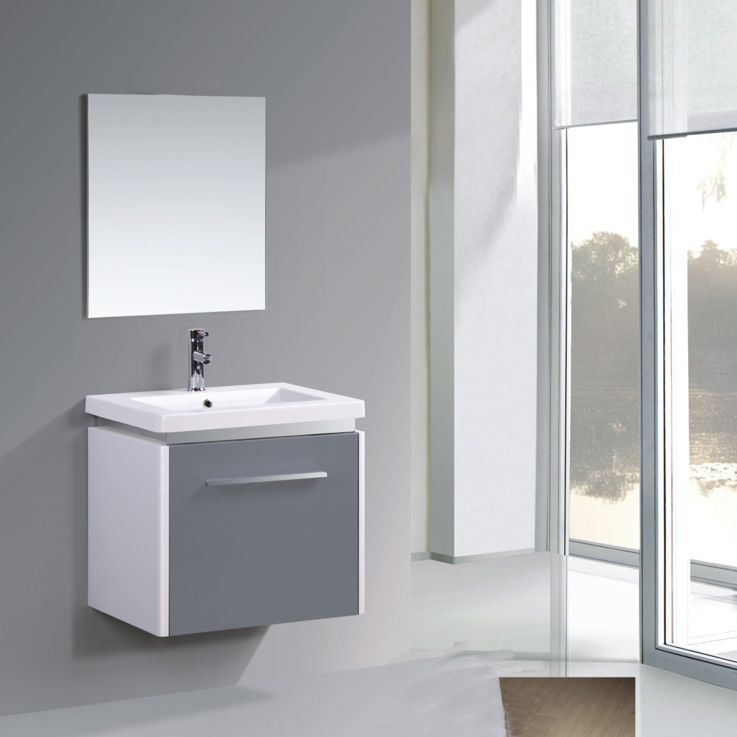 Europeisk møbelsett til badet. Hvit keramikkvask er inkludert. Designet på skapene er stilrent, minimalistisk og passer perfekt til skandinavisk design. Servantskapet har et enkelt og praktisk design. Skuffene er svært romslige og lett å komme til for oppbevaring sammenlignet med et tradisjonelt skapdesign.