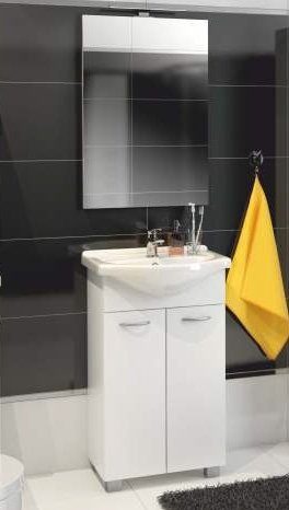 Pik møbelpakk med servantskap, servant, speilskap og belysningspakke. Møblene er laget av hvit laminert MDF.