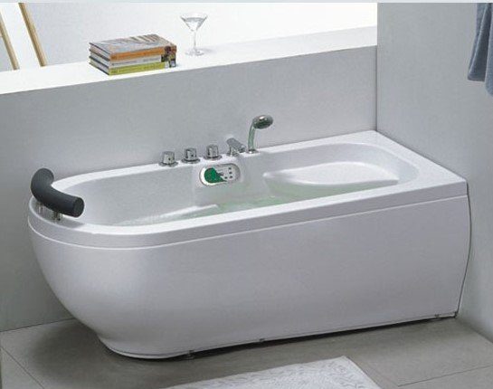 Komplett massasjebadekar med blander, produsert i motstandsdyktig akryl. Materialet har fordelen at det ikke gulner, og er enkelt å vedlikeholde.