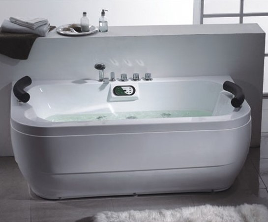 Komplett massasjebadekar med blander, produsert i motstandsdyktig akryl. Materialet har fordelen at det ikke gulner, og er enkelt å vedlikeholde.