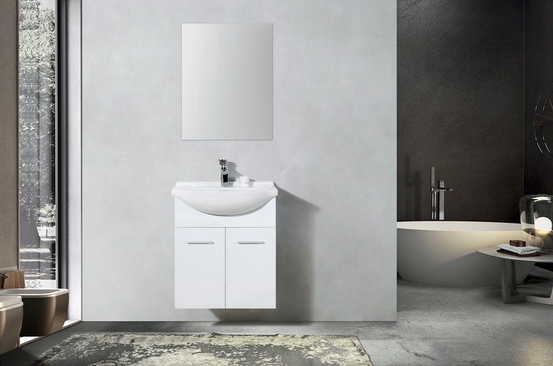 Denne møbelpakken passer godt til det moderne badet. Det enkle designetgir et rent og friskt inntrykk.