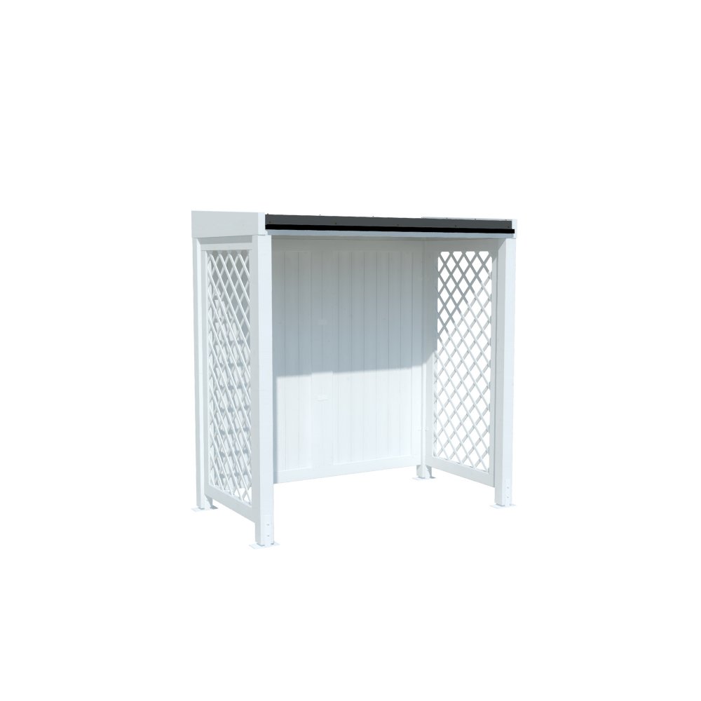 Velg mellom skjul, vedbod, drivhus, hjørnepergola og paviljong i høyeste kvalitet med hvitlakkering.