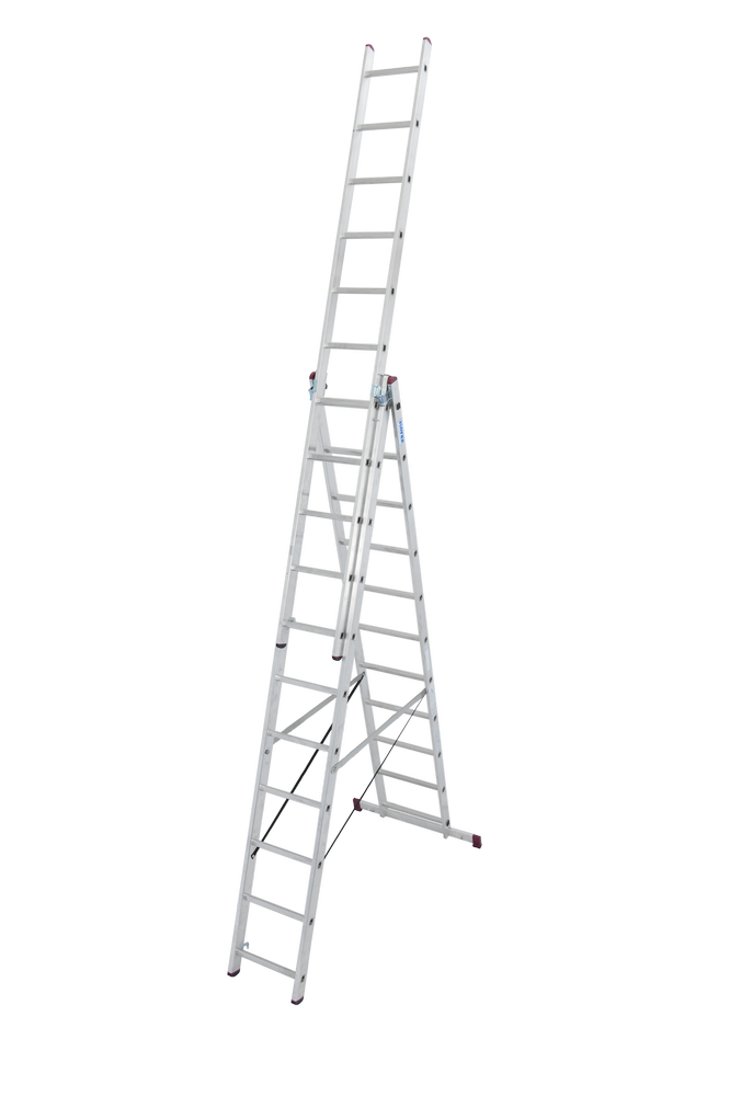 Denne multifunksjonelle stigen i aluminium har mange bruksområder. Du kan bruke stigen som foldestige, enkelstige eller trappestige. Stigen er delt inn i 3 deler der alle delene har 11 trinn hver og en lengde på 3,10 meter som gir deg en arbeidshøyde opp til ca. 7,25 meter. Stigen har en vektkapasitet på 150 kg. Stigen er utført med glidebeskyttelse for større stabilitet og sikkerhet.