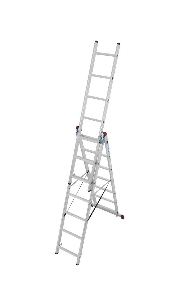 Denne multifunksjonelle stigen i aluminium har mange bruksområder. Du kan bruke stigen som foldestige, enkelstige eller trappestige. Stigen er delt inn i 3 deler der alle delene har 7 trinn hver og en lengde på 1,95 meter som gir deg en arbeidshøyde opp til ca 5,10 meter. Stigen har en vektkapasitet på 150 kg. Stigen er utført med glidebeskyttelse for større stabilitet og sikkerhet.