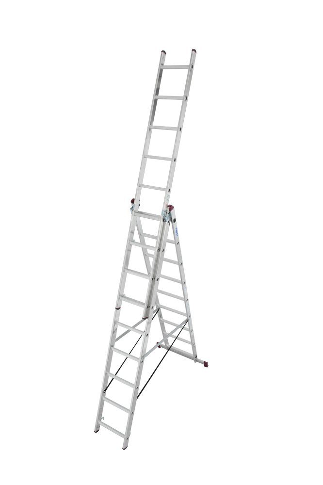 Denne multifunksjonsstigen er anvendelig for en rekke jobber, og med praktisk trappefunksjon kan den brukes i trapper og på andre ujevne overflater. Du kan bruke stigen som foldestige, enkelstige eller trappestige. Stigen er delt inn i 3 deler der alle delene har 9 trinn hver og en lengde på 2,50 meter som gir deg en arbeidshøyde opp til ca 6,20 meter. Stigen har en vektkapasitet på 150 kg. Stigen er utført med glidebeskyttelse for større stabilitet og sikkerhet.