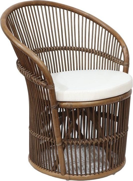 Narva serie med originale og futuristiske lenestoler, laget av rotting i forskjellige farger med en kremhvit sittepute.