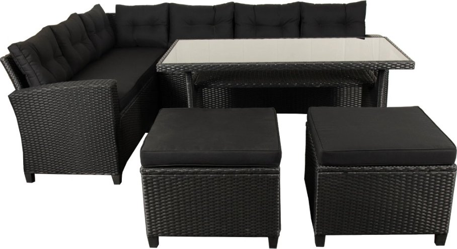 New York utendørs gruppe; hjørnesofa med bord og fotskammel - Sort kunstrotting
