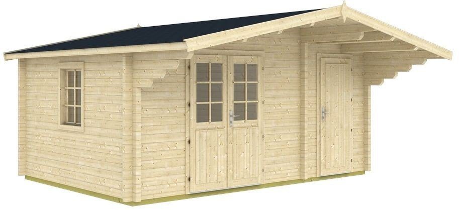 Olivia D anneks er et tømmerhus i elegant design med saltak og solid takgavl. Et fint anneks som kan brukes til nye. Materiale av nordisk gran av høy kvalitet, valgt med omhu. Utstyrt med to dører, en dobbeldør med dekorative sprosser, brystning og en enkeltdør i tre samt et åpningsbart vindu. Annekset passer passer bra som campinghytte, jakthytte, hytte, kontor, gjestehus og mer. Leveres som byggesett, ubehandlet, og det er enkelt å montere etter anvisningen som følger med.