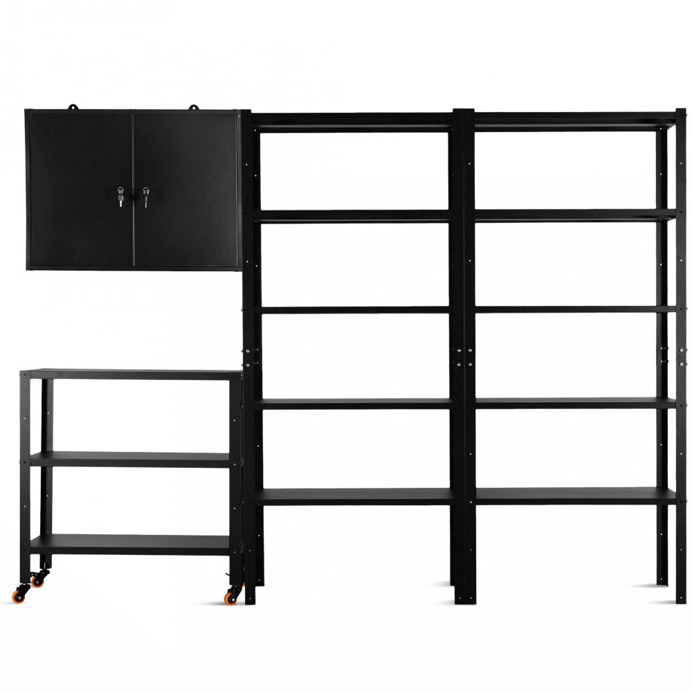 Skapet, hyllene og vognen er laget av kaldvalset stålplate , som er et svært slitesterkt materiale og gir produktene en fin, skinnende overflate. Stålet er 0,8 mm tykt i hyllene og vognen og 0,6 mm tykt i skapet. Skapet har doble dører og en hylle for enkel og organisert oppbevaring. Skapet og vognen har en total vektkapasitet på 500 kg. Hyllene i lagerhyllene har en lastekapasitet på 80 kg per hylle, totalt 400 kg fordelt på fem hyller.