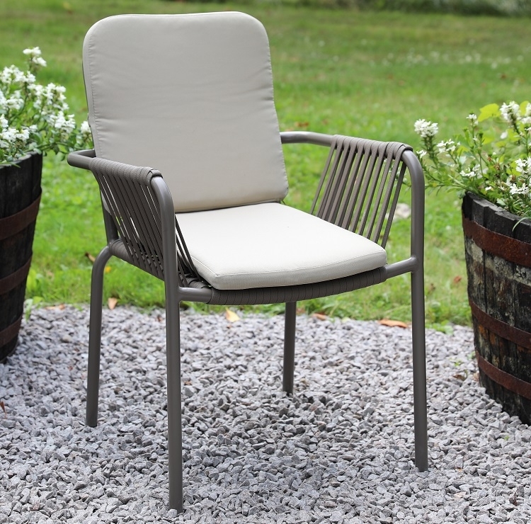Inkludert 6 stk. flotte Lincoln stabelbare karmstoler i grålakkert aluminiumsramme med en beige pute for rygg og sete. Spisegruppen passer perfekt på balkong, uteplass og i vinterhagen.