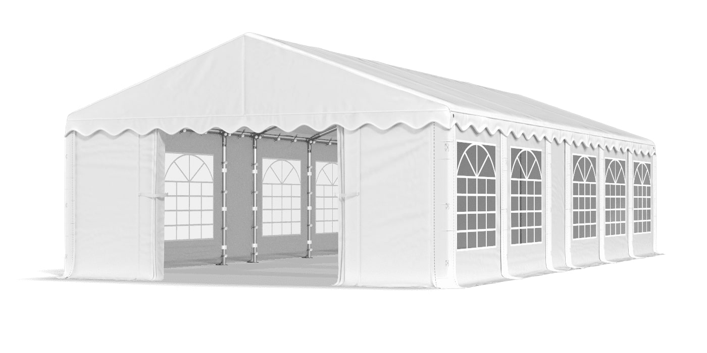 Sideveggene er laget av tykk og slitesterk PE presenning 240g/m2 med stort funksjonelt dekorativt vindu med sprosser. Høyden på veggene er 2 m. Ved hjelp av vinduene plassert på hvert to-meterssegment får teltet et mer visuelt tiltalende design, noe som gjør det perfekt for studentfester, fester, feiringer, samt utstillinger og arrangementer. Vinduene slipper dagslyset inn, noe som gir en behagelig og avslappende følelse når du oppholder deg utendørs, samtidig som den beskytter mot skadedyr og uønsket vær. Veggene er montert på hvert to-meters segment, ved hjelp av spesielle elastiske bånd, som også lar deg fritt fjerne vegger for ekstra åpninger, slik at du kan tilpasse dine egne behov.