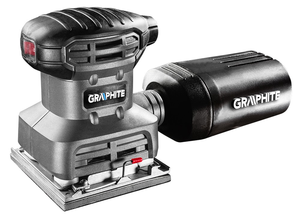 Håndtaket er dekket med gummi, noe som sikrer at verktøyet ligger trygt i hånden. Slipemaskinen har et støvutsugingssystem, og er dessuten utstyrt med en hard beholder med partikkelfilter. Systemet for raskt bytte av slipepapir er en stor fordel.