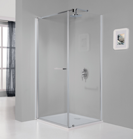 Dusjhjørne med utadgående dør. Glasspartiene i dusjhjørnet er laget av 6 mm sikkerhetsglass, glassbeskyttelsebehandlet som standard. GLASS PROTECT glassbeskyttelse er en overflatebehandling som gjør at vannet renner lettere av og etterlater seg mindre kalk og smuss. Tett dørlukking er garantert av magnetiske dørlister. Høyde 195 cm. Modellen er tilgjengelig i flere størrelser og man kan montere det enten på høyre eller venstre side.