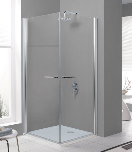 Dusjhjørne med inn- og utadgående dører. Glasspartiene i dusjhjørnet er laget av 6 mm sikkerhetsglass, glassbeskyttelsebehandlet som standard. GLASS PROTECT glassbeskyttelse er en overflatebehandling som gjør at vannet renner lettere av og etterlater seg mindre kalk og smuss. Tett dørlukking er garantert av magnetiske dørstrimler. Høyde 195 cm. Modellen er tilgjengelig i flere størrelser.