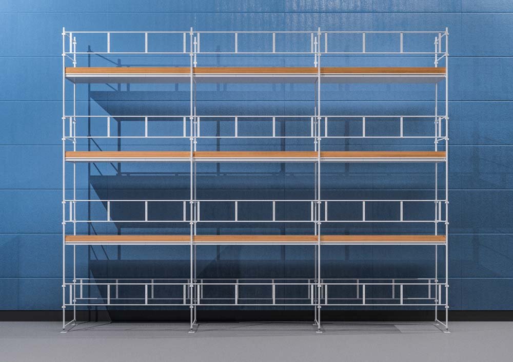 HAKI Ram har en enkel konstruksjon med lukkede rammer som er raske å montere. De lette aluminiumsplatene kan stables og de selvavstivende rammene til rekkverket trenger ikke diagonalstag. Dette gjør at det går raskt å få stillaset på plass.