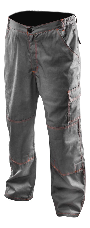 Oppfyller EN ISO 13688:2013. 35% bomull, 65% polyester, 245 g/m2, mangesidige lommer, gummistrikk i midjen, knebeskyttelse tilgjengelige, CE-sertifikat.