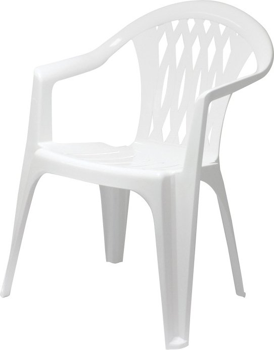 Stol laget i robust plastikk som tåler regn og sol uten problem.