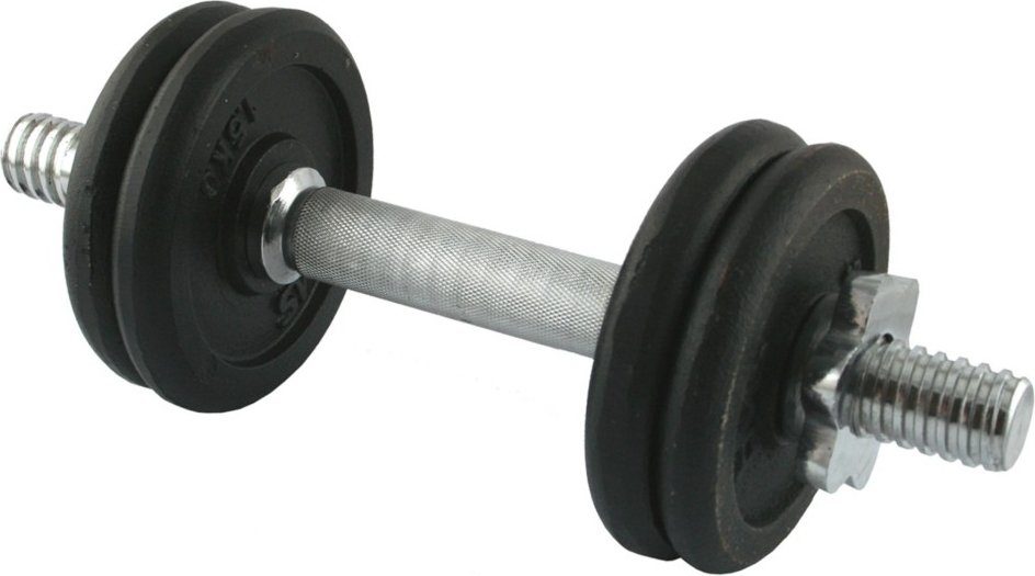 En enkel klassisk manual med riflet grep. I settet følger det med en fornicklet stang og flere sorte vekter i jern.