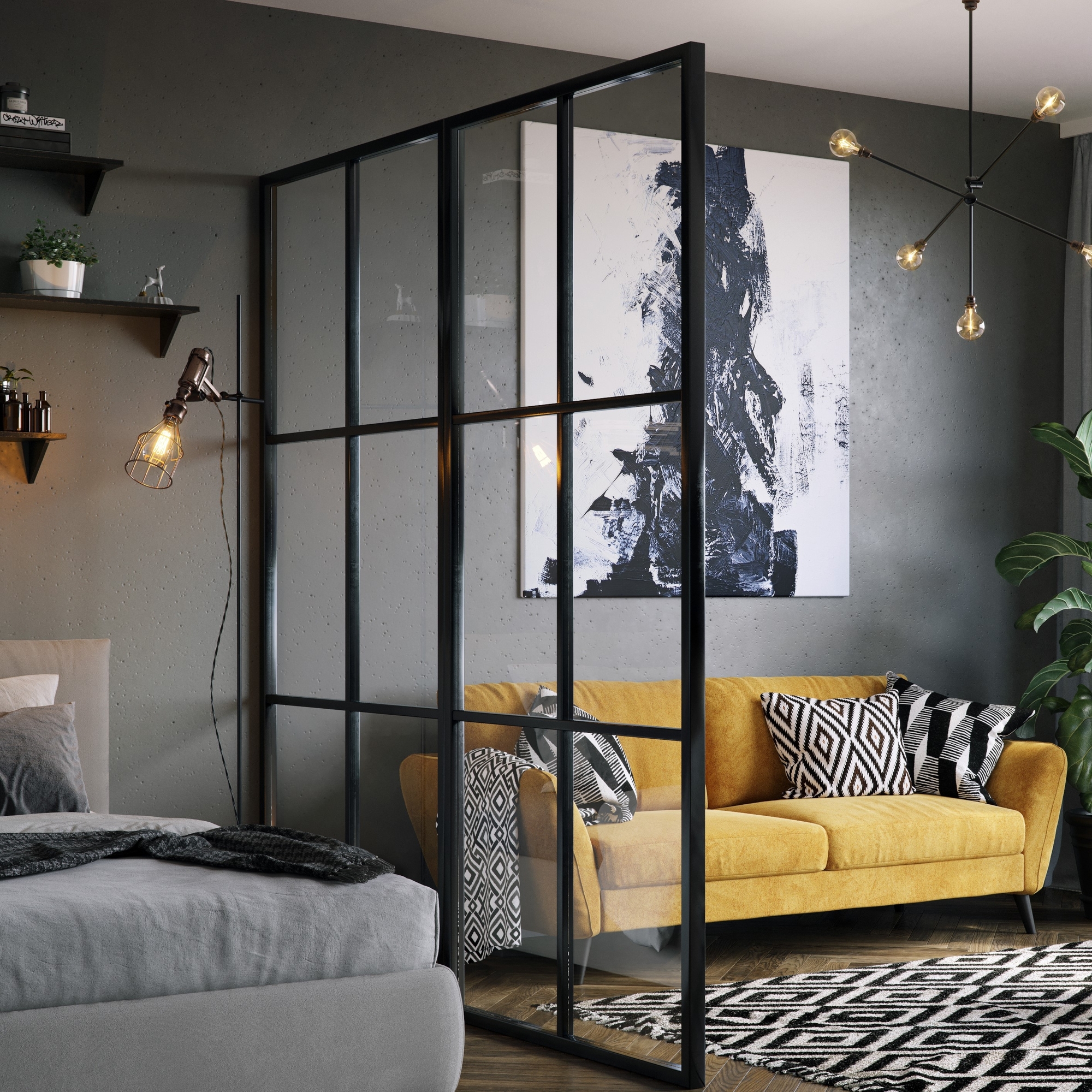 Få en stilren og flott industriell følelse i rommet enten som en avgrenser eller hvorfor ikke som en dusjvegg i skikkelig moderne stil.