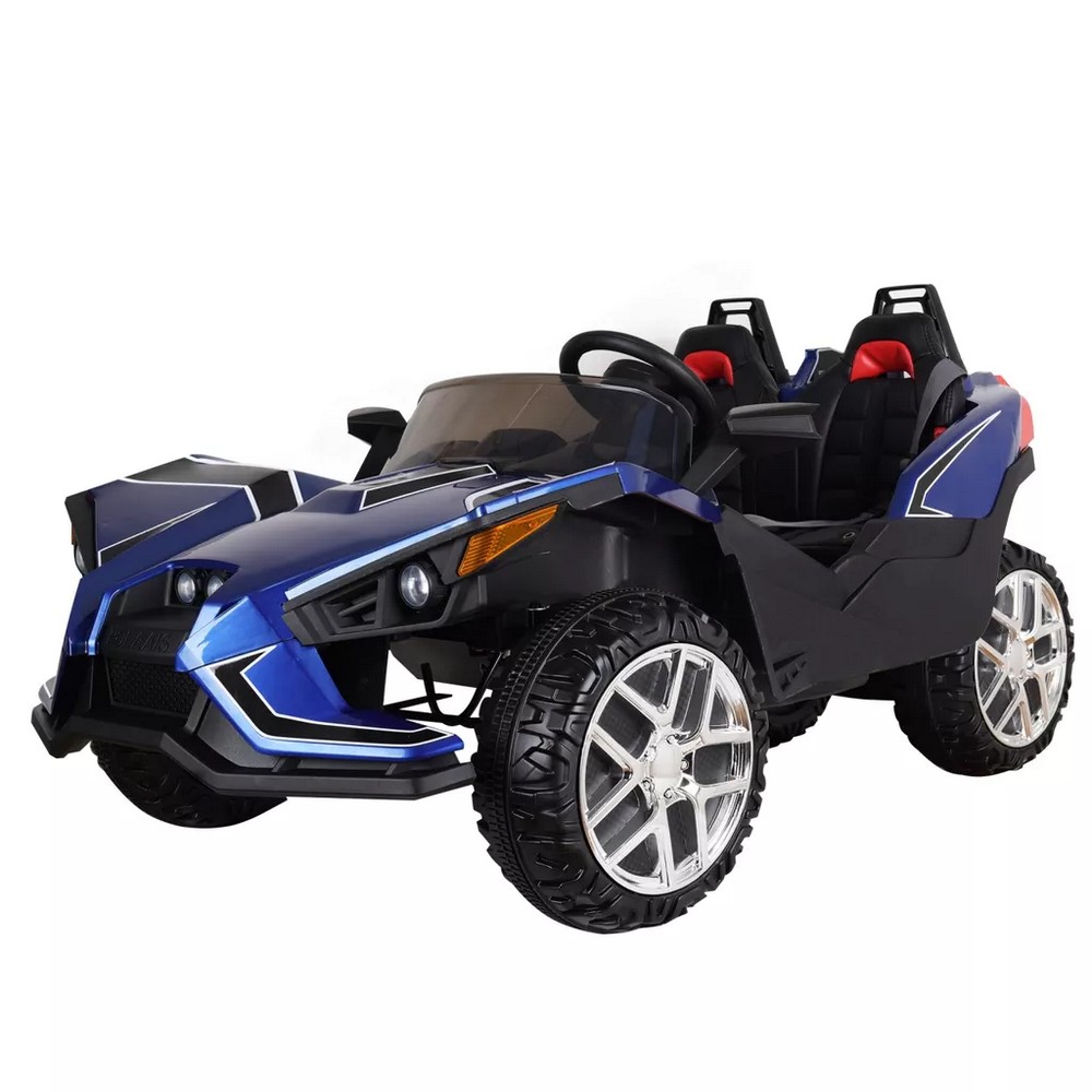 Barnebil med to seter, for barn 3-8 år. Utstyrt med lys- og lydeffekter så vel som MP3-spillere.